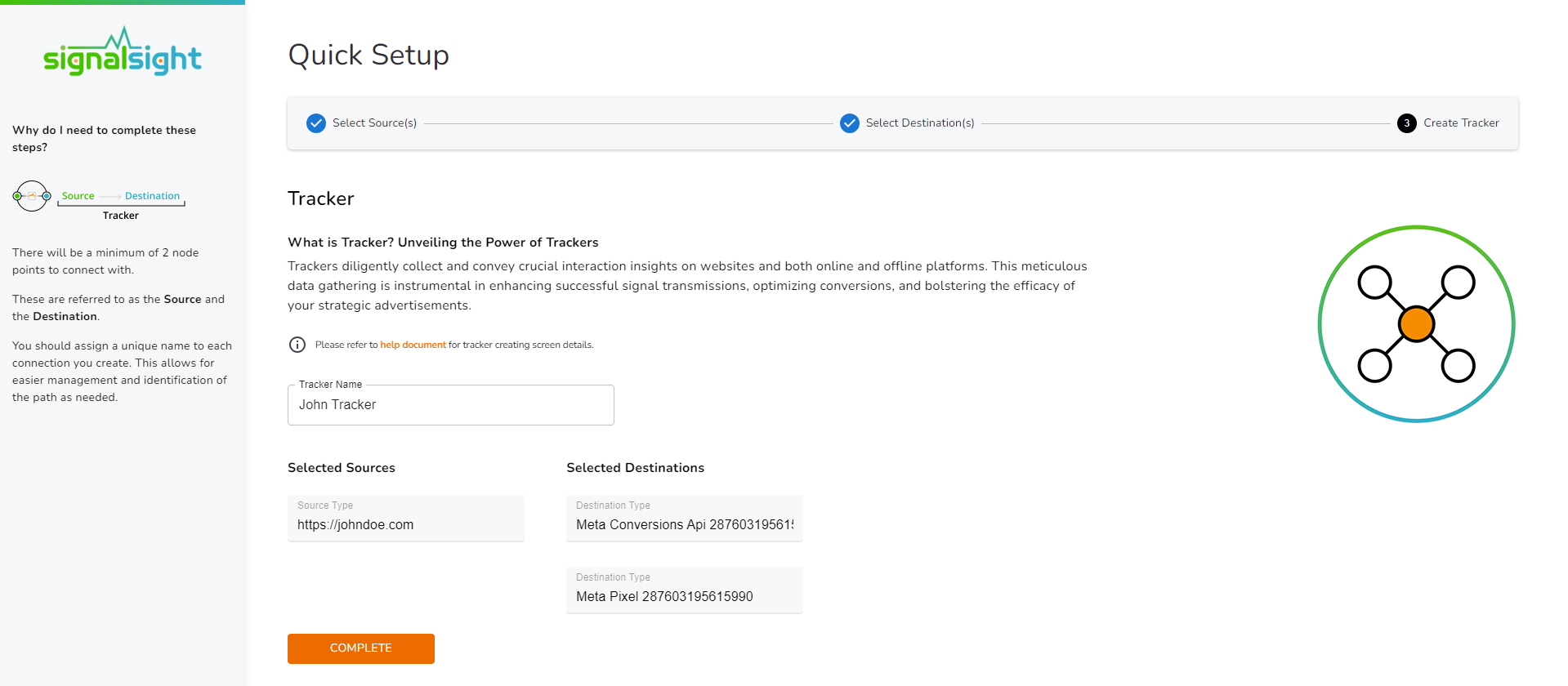 After providing a name for your tracker, you can review the source and destination, and complete the wizard.